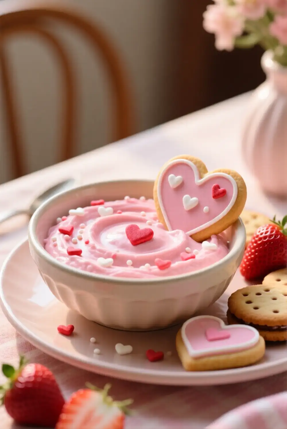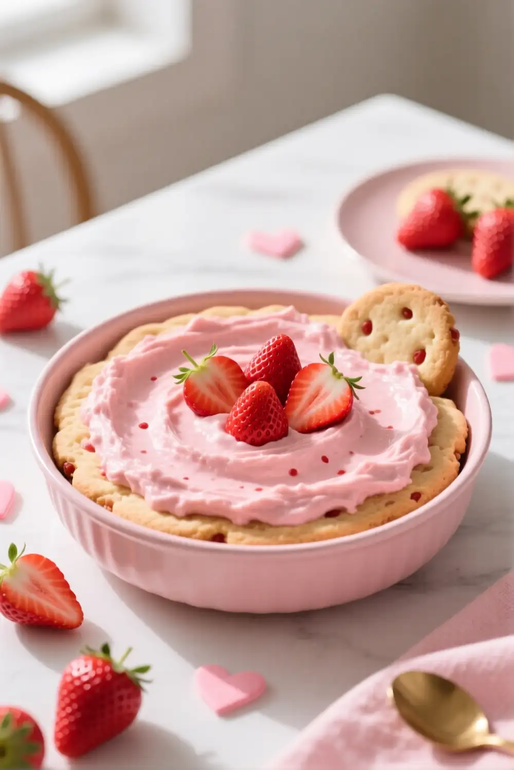 This dip feels light and cheerful, making it great for daytime celebrations or Galentine-style gatherings. It brings a subtle nostalgic dessert vibe while still feeling modern and shareable. It’s especially appealing if you want something that looks festive but tastes soft and familiar.