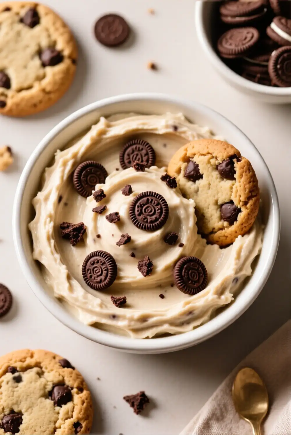 Chocolate chip cookie dough dip brings a comforting, bakery-style vibe that feels instantly familiar. Mini chocolate chips work best here, giving every bite a balanced crunch without overpowering the base. Serve it with graham crackers or apple slices for an easy dessert that feels both indulgent and approachable.
