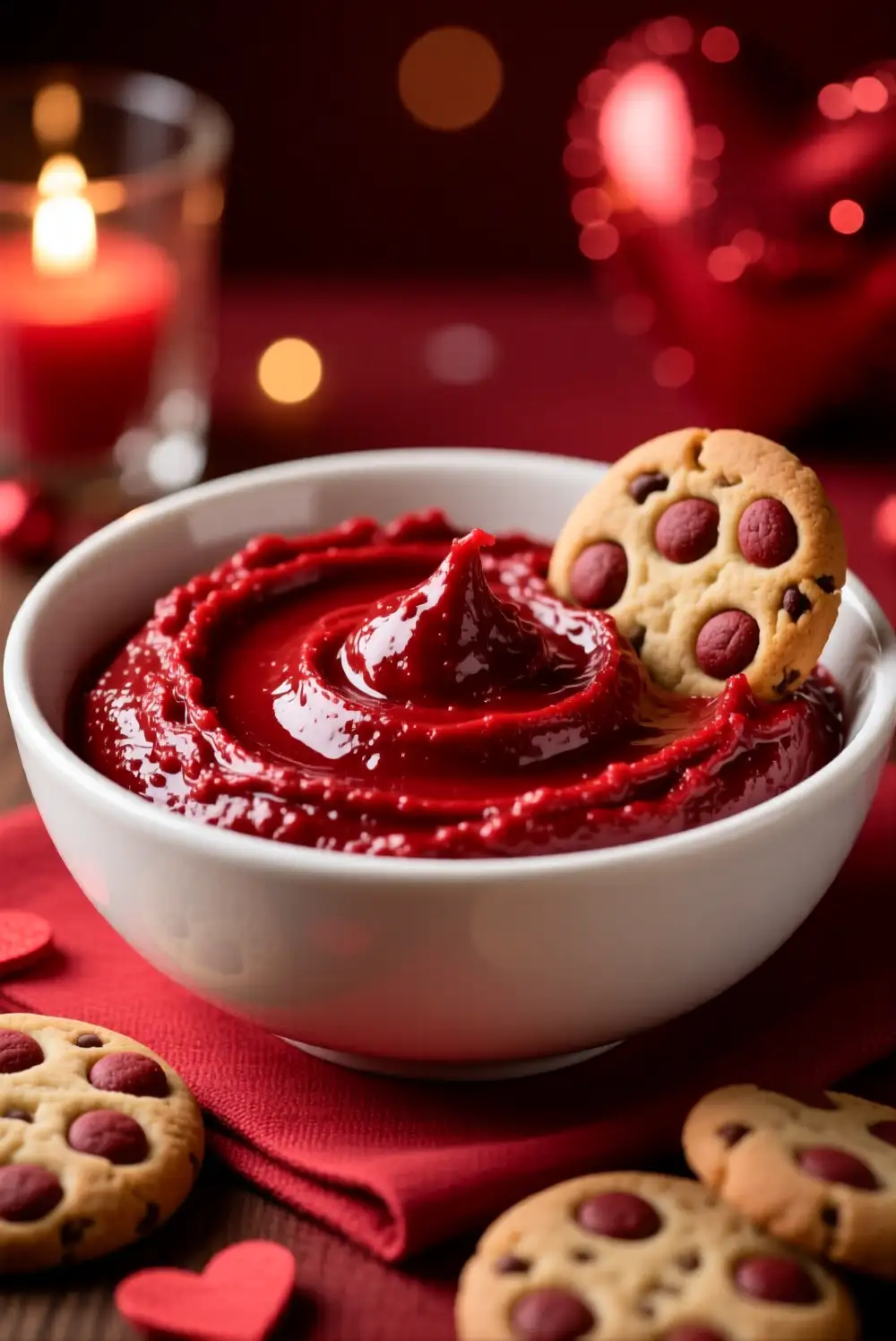 Red velvet cookie dough dip stands out instantly thanks to its deep color and soft cocoa flavor. It feels indulgent and romantic, perfect for evening desserts or date-night spreads. Pair it with cream-filled cookies or simple crackers to let the flavor shine.